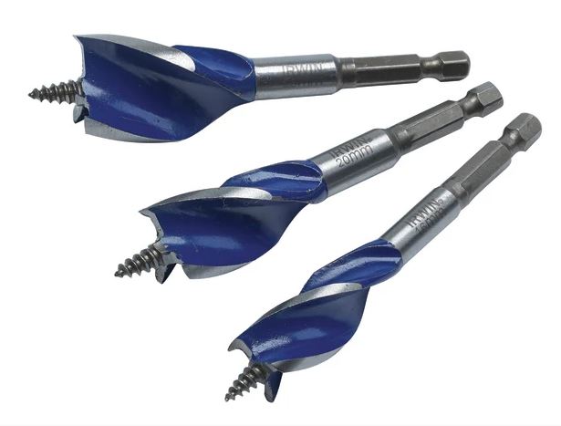Irwin Blue Groove 6X Drill Bits are ideal for drilling wood and offer 6x faster drilling penetration than a standard flat bit. Their 'Tri-Flute' design allows for faster chip ejection and their full screw tips ensure ease of use and pull through. The cutting spurs produce clean holes with minimal break out and the tapered flute reduces binding. The drill bits are also heat-treated for extra durability.